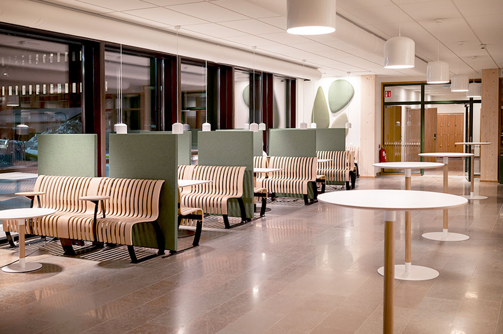 Bättre samordning med väggakustik i klassrum, personalrum mm, mellan A/Akustik och verksamheten, då man ofta placerar akustikpåställen där verksamheten behöver väggyta till annat, tex möblering.