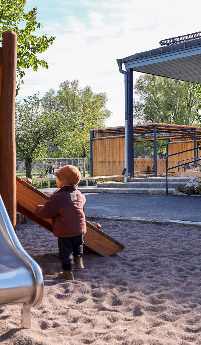 Förskolan Bifrost har fjorton avdelningar. Här finns öppen förskola och en av avdelningarna är en ur och skur-avdelning, och två avdelningar är anpassade för barn med funktionsvariation. Förskolan startade vårterminen 2025.