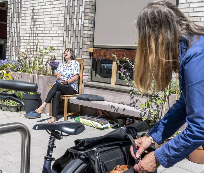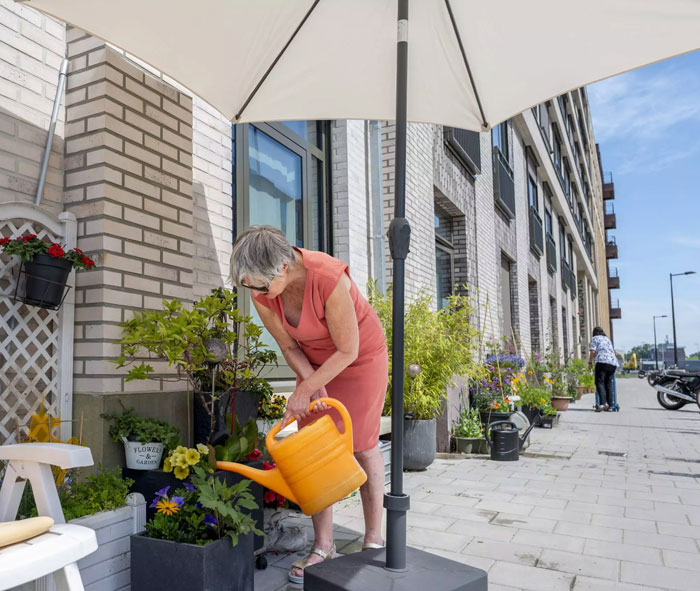 En studie kring äldres (55+) önskemål i Nederländerna visade att den nuvarande generationen seniorer behöver kompakta bostäder i en trygg boendemiljö, men ändå vill de vara anslutna till stadslivets myller. Att ta hand om varandra och dela med grannar är fördelaktigt på ålderdomen: gemensamt beroende gör att människor kan bo hemma längre och motverkar ensamhet. Ett resultat av studien är boendet Stadsveteraan 020 som vi besöker.